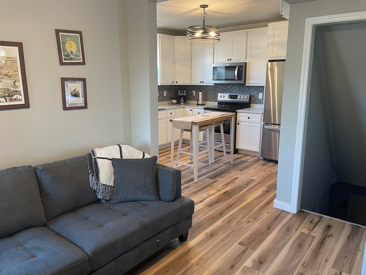 Welcome to The O'Bannon House in Waterloo, IL, where we offer the best of both worlds! The city limits of St Louis are only about 17 miles away, yet we are located within walking distance of all that the idyllic town of Waterloo offers: great restaurants, shops, and breweries. Enjoy our coffee bar, a fully-equipped kitchen, and a park-like backyard. If you have a larger group, consider booking this unit (The Ruby) and the upstairs unit (The Hugh) so you can all stay in one place!