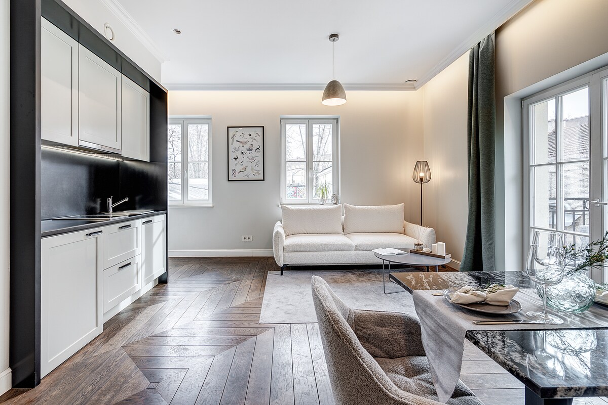Užijte si toto jedinečné a stylové studio jen pár kroků od srdce Starého Vilniusu. Toto 38 metrů čtverečních velké studio obklopené krásnými kavárnami, útulnými bary, krytým trhem s potravinami a parkem se skvělým výhledem na Vilnius zahrnuje plně vybavenou kuchyň, velmi rychlé WiFi (500 MB/s), televizi s Netflixem a pohodlnou manželskou postel. Nachází se ve 120 let staré památkové budově, jen čtyři autobusové zastávky od letiště Vilnius a 10 minut pěšky od vlakového/autobusového nádraží.