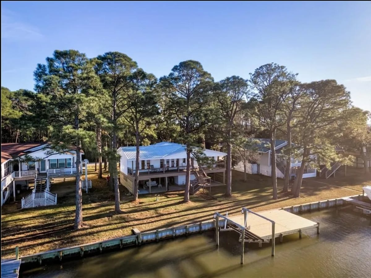 Tento dům se nachází na 2 akrech se stovkami metrů vodní plochy. Dům je vybaven všemi moderními prvky, které vám poskytnou pohodlí, ale stylizovány tak, abyste se cítili odpojeni. Nemovitost se nachází na kanálu, který je spojen s řekou Fowl, Mobile Bay a Mississippi Sound. Na pozemku jsou kajaky a kánoeň, abyste mohli prozkoumat vodní cesty nebo si rybařit. Nebo si jen odpočiňte na velkém krytém zadním balkoně a krytém piknikovém prostoru s plynovým grilem. Pouze 15 minut od pláže