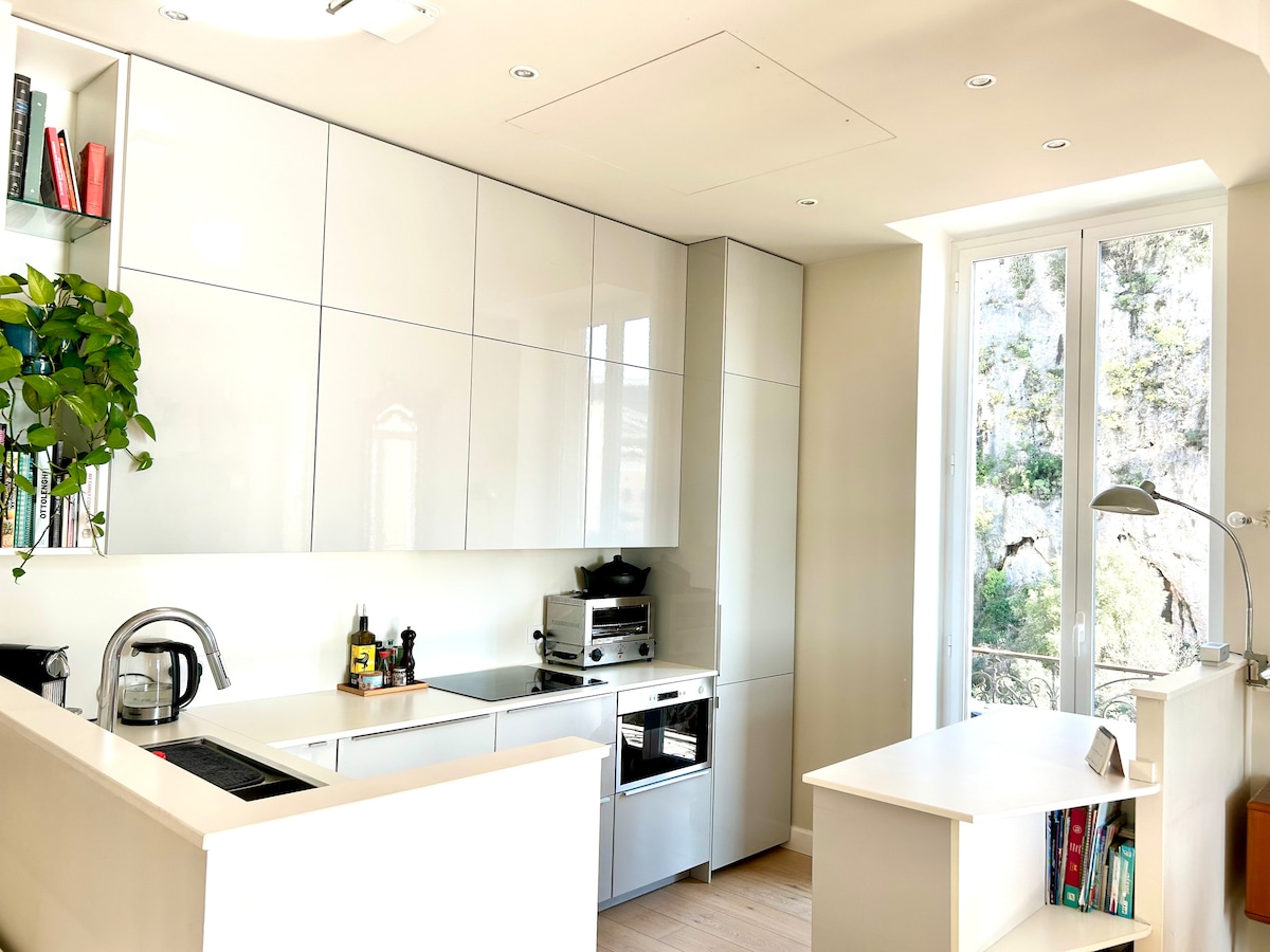 2 pièces entièrement rénové, cuisine équipée, mobilier de qualité neuf, 50 m du vieux port, idéal Yacht Show, Grand Prix, Festivals. Proche de toutes commodités, restaurants, zone piétonne, marché aux herbes, palais princier. Le logement se situe au second étage sans ascenseur, parking public en face de l'immeuble, bus et gare à proximité Simplifiez-vous la vie dans ce logement paisible et central.