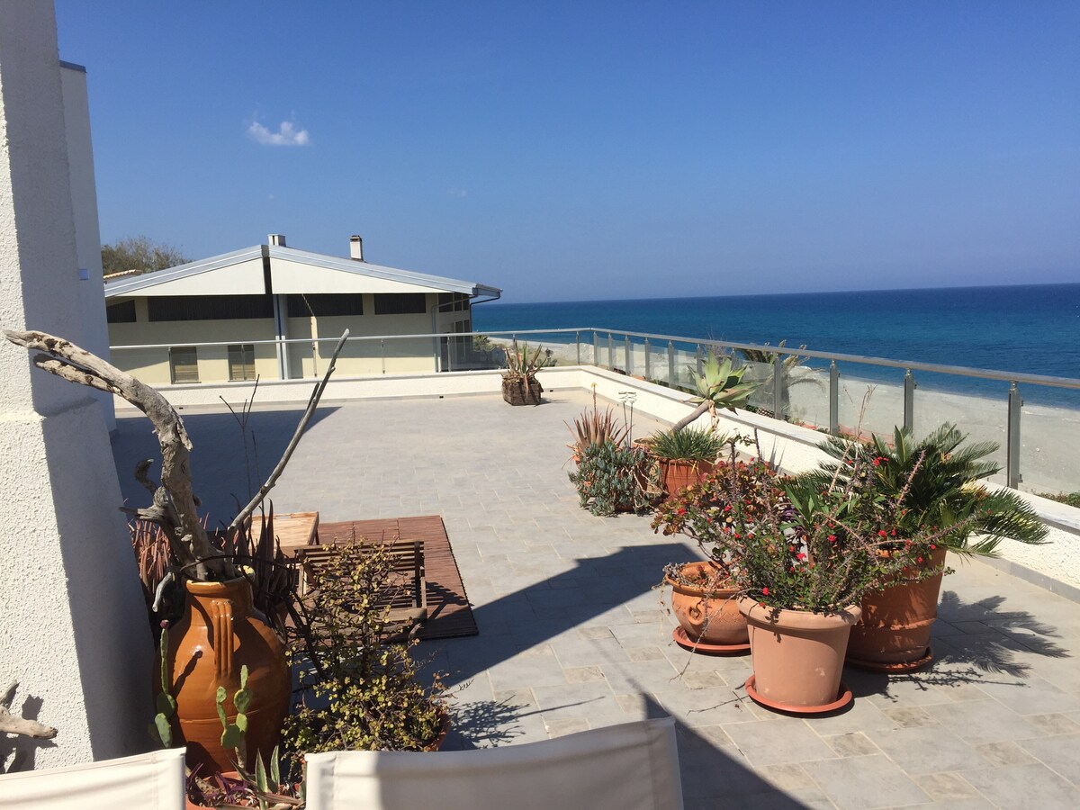 Nuovissimo bilocale sul mare, al primo piano con accesso a terrazzo panoramico. L'appartamento è dotato di ogni confort e completamente condizionato. Wifi free. Camera da letto con armadio, cucina abitabile con divano letto matrimoniale, bagno con box doccia, accesso al terrazzo. Lenzuola e asciugamani compresi nel prezzo per soggiorni minimi di 3 notti. L'appartamento si trova a pochi metri da ampia spiaggia libera e dai principali punti di ristoro, nonché dai servizi.