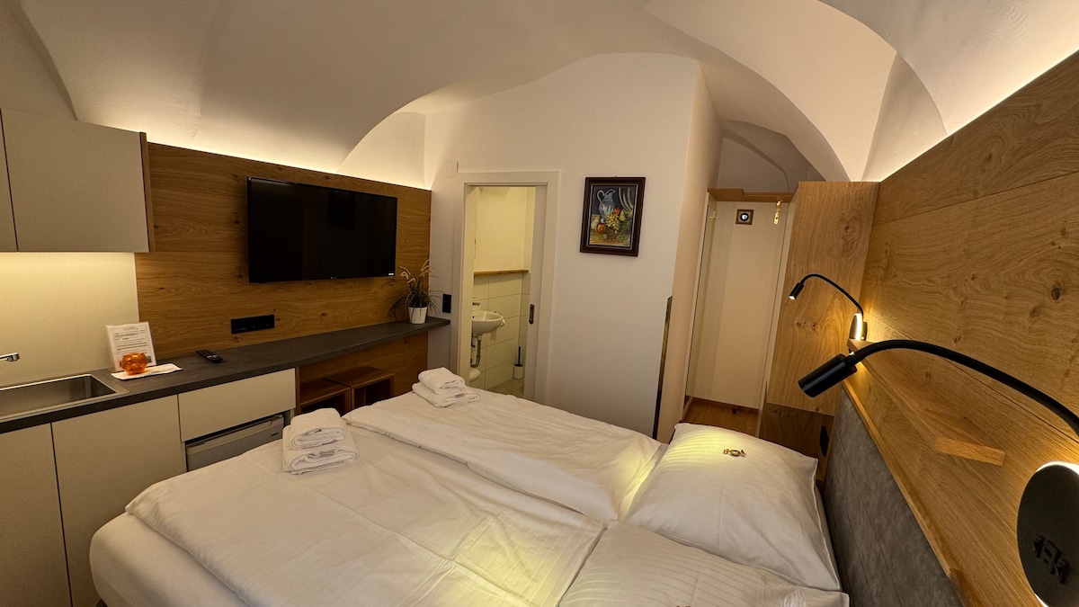 V jedné z nejstarších čtvrtí se nachází náš 400 let starý dům na velmi klidném místě, ale dostatečně centrálně, aby se dalo do starého města dojít za 10 minut pěšky. Pekárna je blízko. Byt má obývací pokoj/ložnici a místnost s malou kuchyní/jídelním koutem, s malou koupelnou (sprcha). WC se nachází přes chodbu, cca 3 m od vchodu do bytu - pouze pro tebe. Jsi velmi vítán/a k využití naší velké zahrady. Rádi vám také půjčíme kolo (7 €) nebo tandem – nejlepší způsob, jak prozkoumat Salzburg.