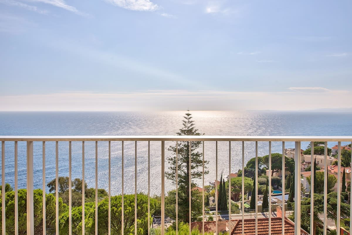 Byt jako zaoceánské apartmá ve Středozemním moři. Úchvatné výhledy od St Jean Cap Ferrat až po Esterel. Jižně orientovaný, klimatizovaný, velká terasa, mramorová koupelna. 15metrový bazén. Jedna ložnice s manželskou postelí a jeden výklenek se samostatným lůžkem. Nachází se na pěkném pozemku. Pak dolů po dlouhém schodišti do malých zátok a k moři. Parkování v rezidenci.