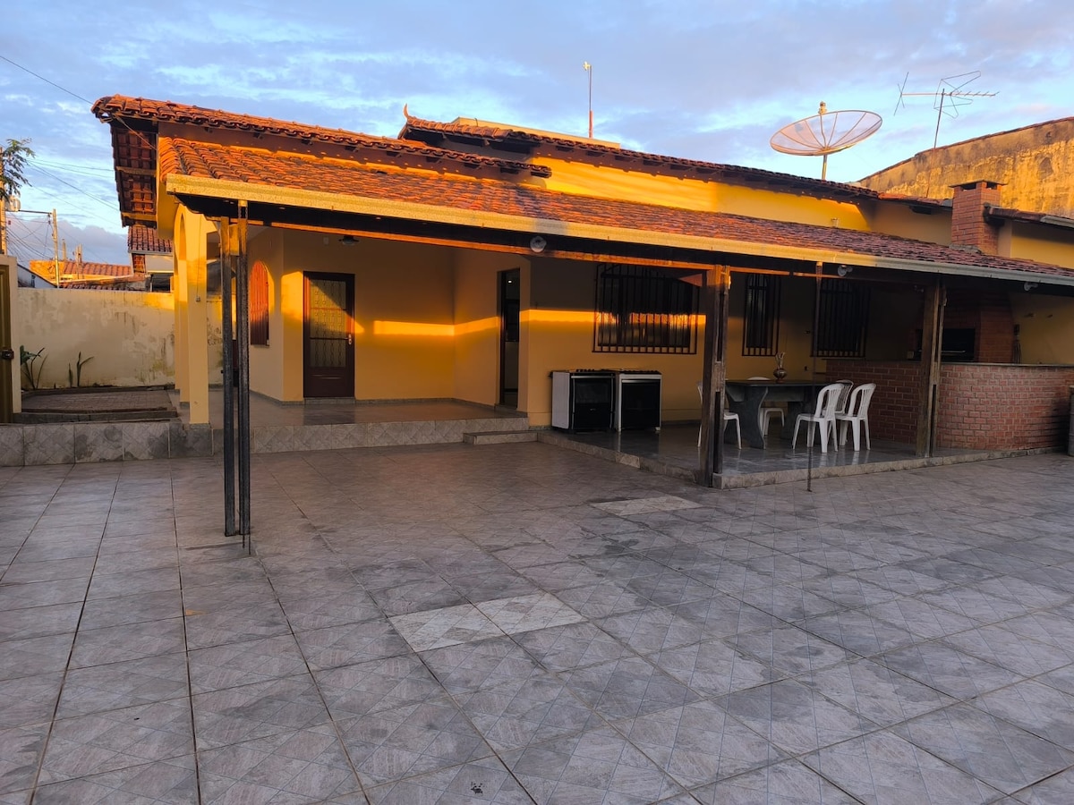 Leve toda a família a este ótimo lugar com muito espaço para se divertir. Casa Grande com quintal. Ideal para família e empresas. Temos Três quartos, dois banheiros, Sala, cozinha completa e quintal. Duas tv conecta a Wi-fi ( Uma na sala e outra na suite) Acomodamos 12 pessoas, sendo 09 pessoas nas Camas e Sofá-Cama e até mais 03 com colchão extra. Temos uma mesa na área externa e também uma churrasqueira. Quintal grande para as crianças brincarem ou deixar seus Pets...