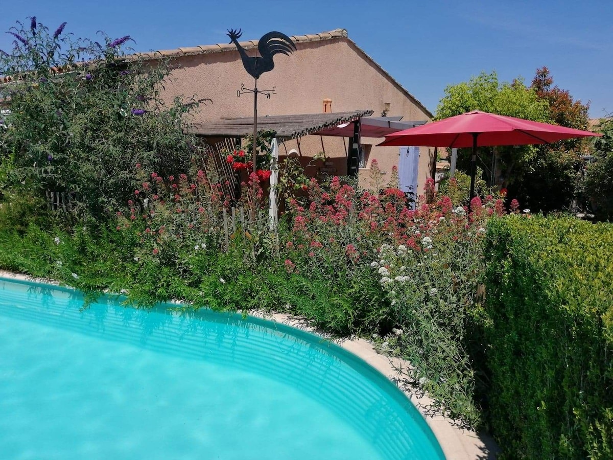 Halte sur la route au calme avec jardin et piscine