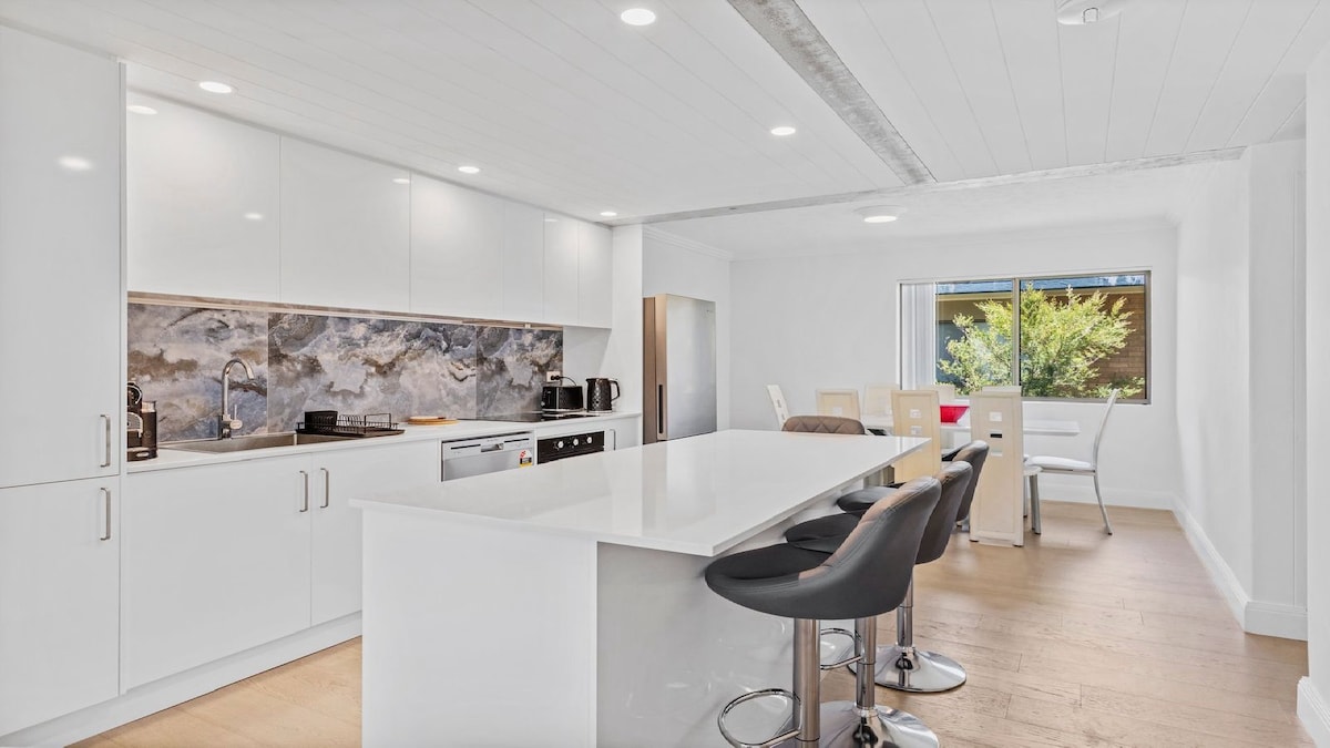 Expansive two bedroom fully furnished unit. Nice and airy in a beautiful historic building. Walking distance to shops, pubs, cafes, clubs, parks and supermarket. Two generously sized bedrooms. Main bedroom has a super king size bed. Modern eat in kitchen, 90cm gas cooktop and oven, french door fridge/freezer and plenty of cooking utensils. Children welcome x Off street parking for 1 car. Gorgeous gardens, BBQ facilities available to enjoy. Why stop at a motel when you can enjoy home from home.