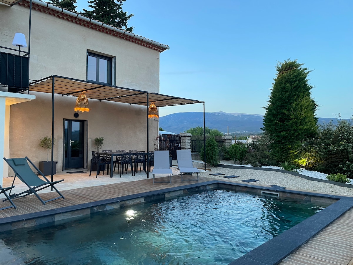Tento apartmán o rozloze 40 m² je součástí velké usedlosti, kde se sezónně pronajímají dvě prostorná ubytování. My, majitelé, Axelle a Frédéric, také žijeme přímo v areálu. Statek pochází z 19. století a nachází se uprostřed 20akrového vinohradu přímo pod Mont Ventoux. Zrekonstruovaný bazén o hloubce 1 metru a rozloze 50 m² nabízí úchvatný výhled na „Géant de Provence“. Byt je plně vybaven pro vaše pohodlí, včetně ložního prádla a ručníků. Budeš moct zaparkovat před ubytováním.