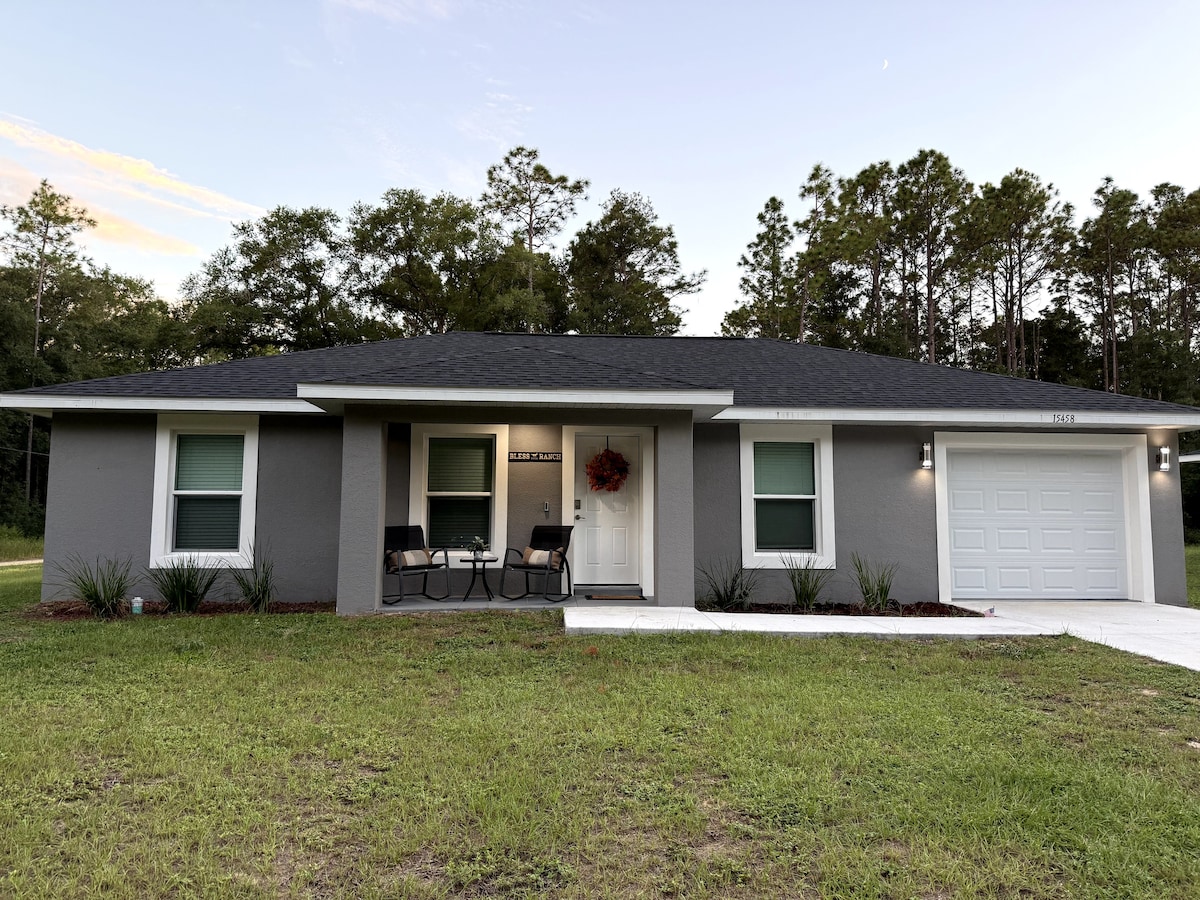 Zažijte život na koňské farmě ve velmi klidném prostředí. Ubytujte se v pohodlném domě s verandou, 3 ložnicemi, 2 koupelnami, plně vybavenou kuchyní, jídelnou a obývacím pokojem. Několik minut od Devil's Den, Goethe Forest, the Hits, World Equestrian Center. Výhodná poloha mezi Dunnellonem a Willistonem. Restaurace a supermarkety do 15 minut. Z bezpečnostních důvodů žádní domácí mazlíčci, žádná asistenční zvířata