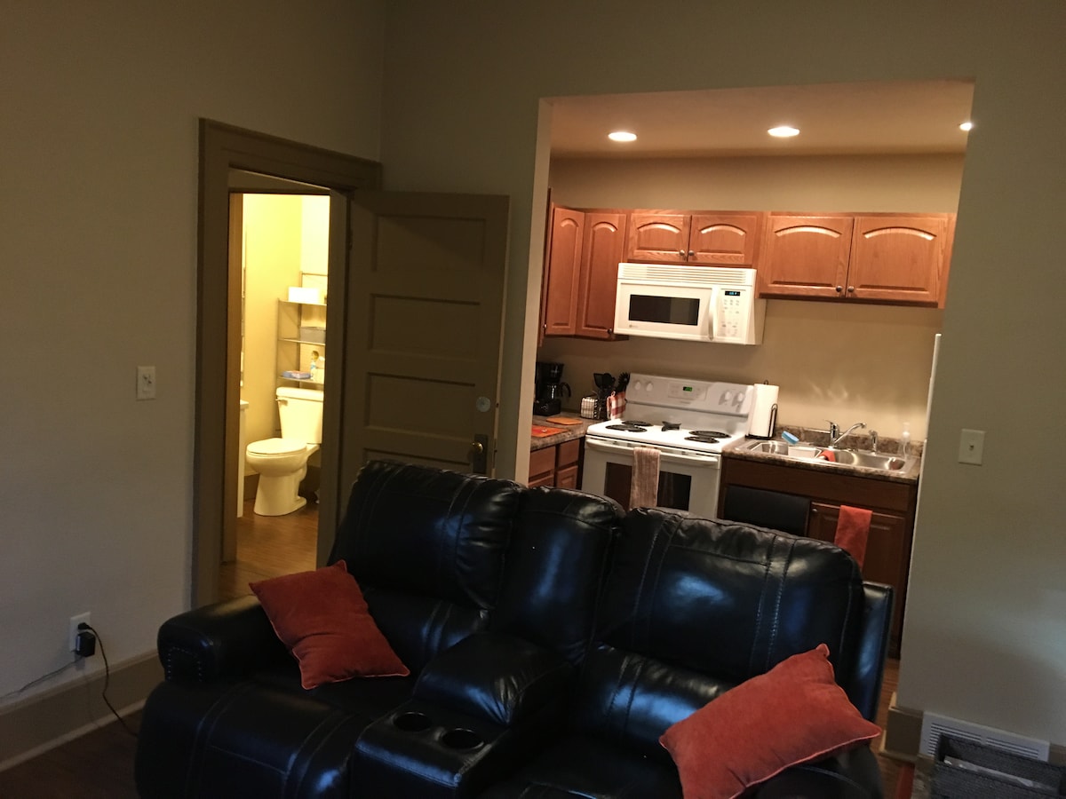 Odpočiňte si v tomto prostorném pronájmu s 1 ložnicí a 1 koupelnou, moderními spotřebiči a domácí atmosférou. Tato cihlová budova nabízí útulný a odlehlý prostor. Naše ložnice nabízí velký prostor ve skříni a moderní ložnici, která umožňuje dostatek prostoru pro vybalení během vašeho pobytu. Náš obývací prostor má otevřený koncept, který zahrnuje televizi s Firestickem, aby bylo možné osobní streamování na vašich obvyklých zařízeních. K dispozici je kávovar a několik dalších vybavení. Tento byt je připraven na krátkodobé i dlouhodobé pobyty