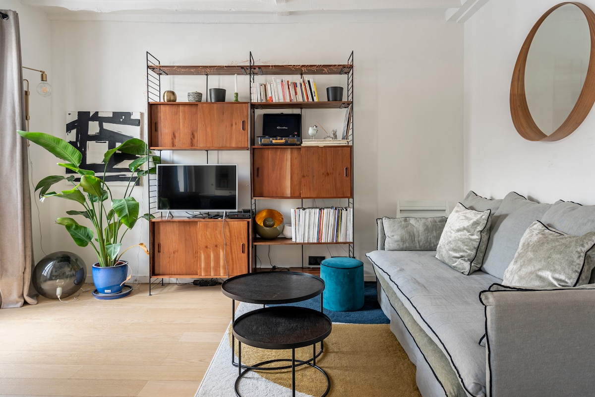 Situé au cœur de Montmartre, entre la rue des Abbesses et la rue Lepic, cet appartement haussmannien climatisé de 50m2 offre une cadre épuré et contemporain. Avec deux chambres et un bel espace de vie comprenant une cuisine ouverte, l’appartement permet de beaux moments de convivialité. Rues pittoresques, excellents restaurants, delicieuses boulangeries, plusieurs lignes de métros à quelques minutes, tout est réuni pour passer un excellent séjour dans le quartier le plus charmant de Paris!