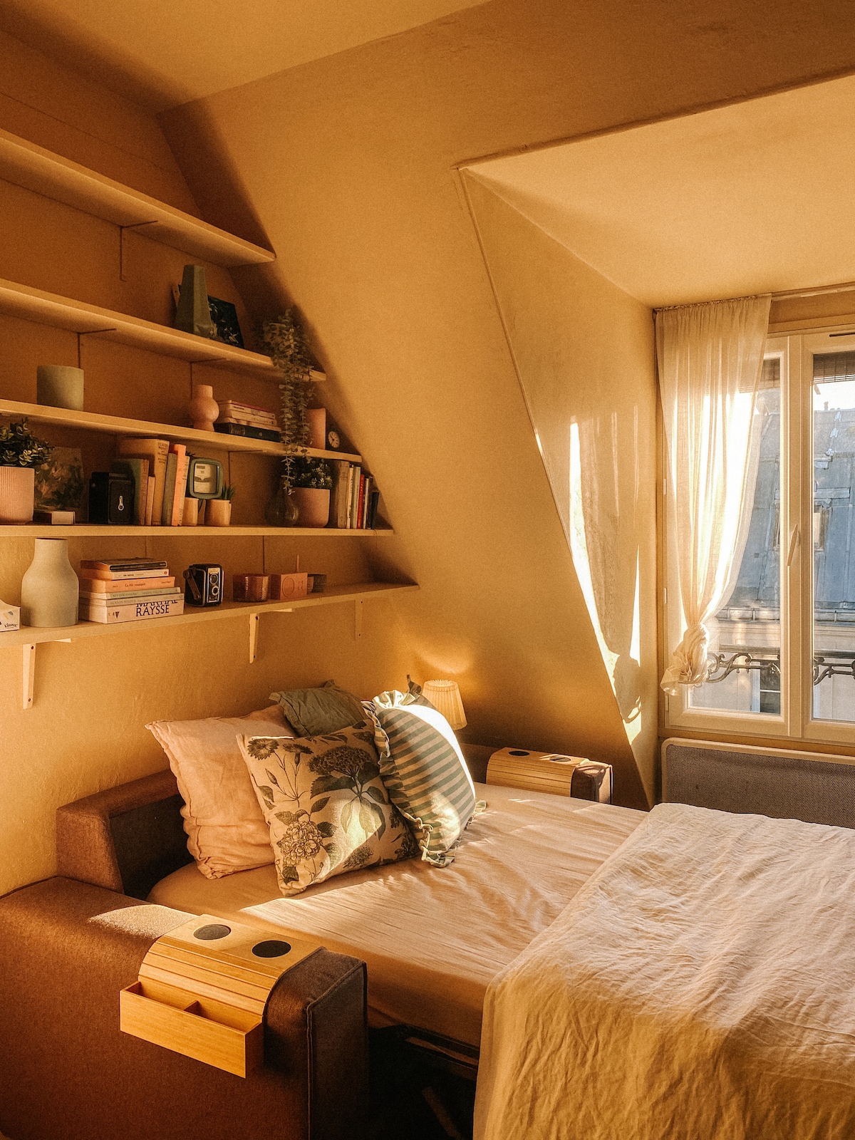 Wake up in Montmartre, as if in a Parisian dream... The first pale rays of winter filter through the bedroom curtains. You stretch under the warmth of the duvet, enveloped in the hushed silence of the 4th floor, lulled by the distant chime of the Sacré-Cœur and the discreet crunch of cobblestones under the footsteps of bundled-up strollers. A steaming cup of coffee beckons: as you open the window, Montmartre reveals itself to you under a winter blanket. You are at the heart of the magic.