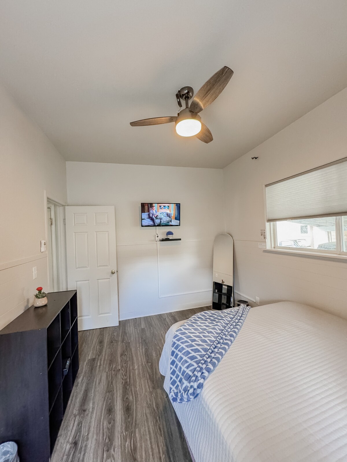 Nabízíme klidné, soukromé a pohodlné studio o rozloze 600 čtverečních stop v horním patře v samostatné budově mimo hlavní dům. Pokoj zahrnuje pohodlnou manželskou postel s matrací Tempur-pedic™, bílým bavlněným povlečením a přikrývkami Pendleton™. K dispozici je také kuchyňský kout s mikrovlnnou troubou, horkovzdušnou fritézou a jídelním koutem. Studio zahrnuje vikýře s výhledem na rodinnou zahradu, stodolu pro kozy a rybník. Východní okna mají výhled na náš dvorek, rybník s liliemi a odlehlá místa k relaxaci a pohodě.