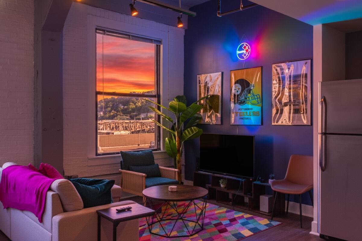 Po roce trvajícím projektu obnovy vám s radostí představujeme náš domov v historické severní části Pittsburghu. Čeká vás klidný klenot v centru města obklopený přírodou s úžasným výhledem na město. Co se vám bude líbit: – Celková a úplná renovace v letech 2020–2021 – Gurmánská, plně vybavená kuchyně včetně kávovaru a čajové stanice – Pozoruhodný výhled na město – V blízkosti stadionů, centra města, muzeí - Relaxační terasa – Gigabitové připojení k internetu – Klidné přírodní prostředí – Pohodlná lůžka s paměťovou pěnou