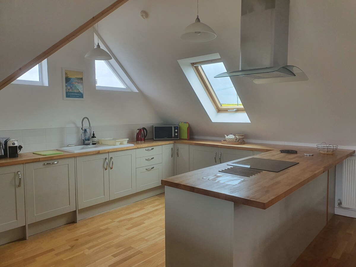 Séník je naše krásná kamenná samostatná stodola. Je ideální pro objevování celého Cornwallu. Nachází se v klidné lokalitě s dalekosáhlým výhledem na cornwallskou krajinu a na pobřeží v Newquay. Zděná terasa je ideální pro grilování, vaše čtyřnohé přátele a posezení s výhledem, nejneuvěřitelnější východ slunce s kávou nebo pozorování hvězd se sklenkou vína. Hayloft je světlý a moderní s odizolovanými dřevěnými podlahami, vysokými trámovými stropy a útulnou kamnou na dřevo pro zimní večery.
