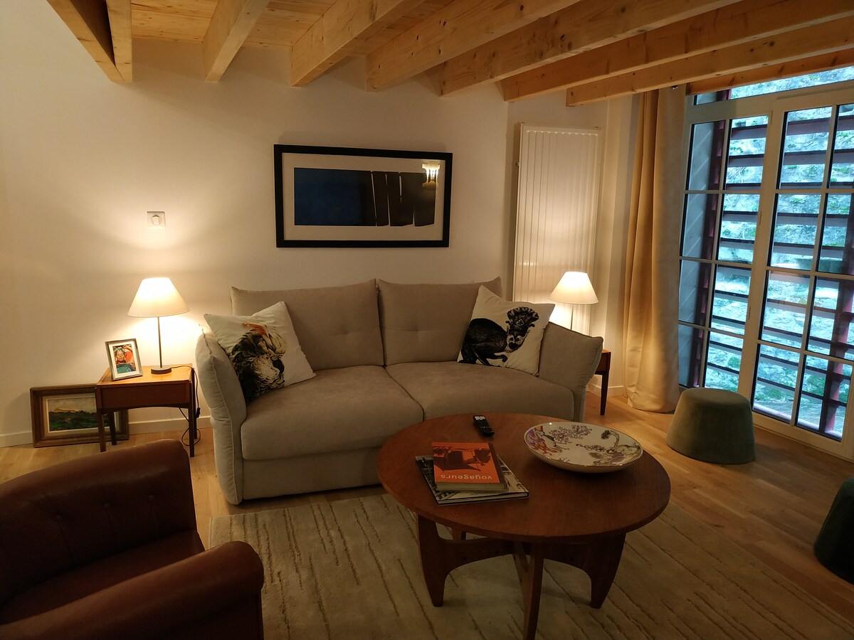 Užij si intimní a elegantní plně nezávislý duplex, jen pár minut chůze od centra Clissonu a jeho obchodů. Dva vchody do studia (ze strany ulice a ze dvora) jsou nezávislé na hlavním domě. Bezplatné a snadné parkování na ulici. Hellfest a Hellcity jsou v docházkové vzdálenosti. Samostatné a flexibilní příjezdy a odjezdy, pokud je to možné.