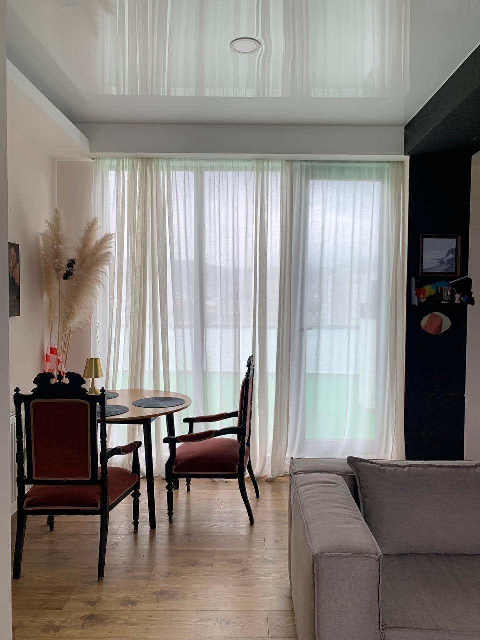 Apartmán s panoramatickými okny, koupelnou nainstalovanou v pokoji, elegantním výhledem na město a útulným balkonem. Vybaven vším potřebným pro pohodlné bydlení. Líbánky můžeš strávit v krásném, klidném a útulném prostředí. Byt se nachází v jedné ze starých čtvrtí v centru Tbilisi - Mtatsminda. Na pozemku nemovitosti je starý vinný sklep, kde se konají bezplatné ochutnávky.