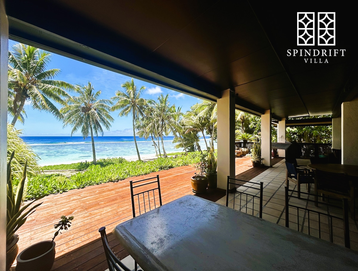 Our spacious beachfront villa is only a few steps away from the beach. There is a large veranda for dining and relaxing, that has a clear view of the ocean. The work of local artists are featured in the villa, providing a vibrant and warm Cook Islands feel. With the ocean at your doorstep, hammocks and sunset views this is the perfect place to relax, unwind and enjoy island life. We have unlimited Internet (via Starlink) and have installed a UV filter for drinking water.