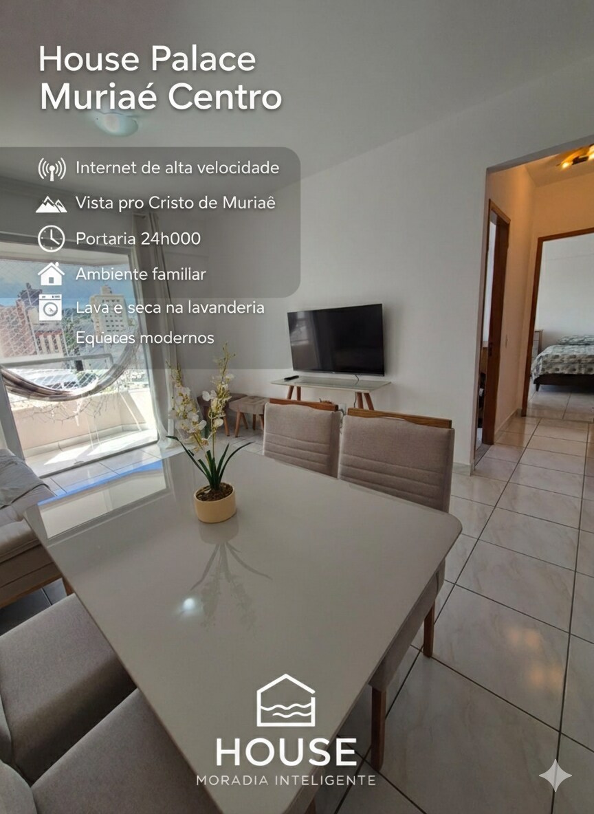 Apartamento completo na melhor localização de Muriaé. A poucos metros de rodoviária, supermercados, farmácias, restaurantes, lojas e transporte público — tudo em até 5 minutos a pé. A suíte possui ar-condicionado e cama queen-size; a sala também tem ar-condicionado. São duas TVs, internet rápida, cozinha e lavanderia equipadas e um segundo quarto com espaço de trabalho. O condomínio oferece porteiros, elevador, câmeras, garagem e todo o conforto para uma estadia tranquila.