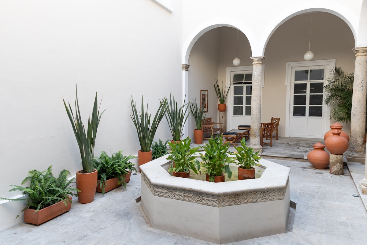 Jedinečný podkroví v restaurovaném koloniálním sídle s 🎨 dobovými uměleckými díly a historickou atmosférou. Užij si 🎱 soukromý kulečník, 🏓 stolní tenis, plně vybavenou moderní kuchyň a 🛏️ prvotřídní ložní prádlo. Vrcholem je 🌇 panoramatická střecha s 🏊♂️ vyhřívaným bazénem, venkovním nábytkem a bujnou vegetací, která nabízí krásný výhled na historické město. 📍 Skvělá, bezpečná lokalita v pěší vzdálenosti od restaurací, obchodů a prohlídek.
