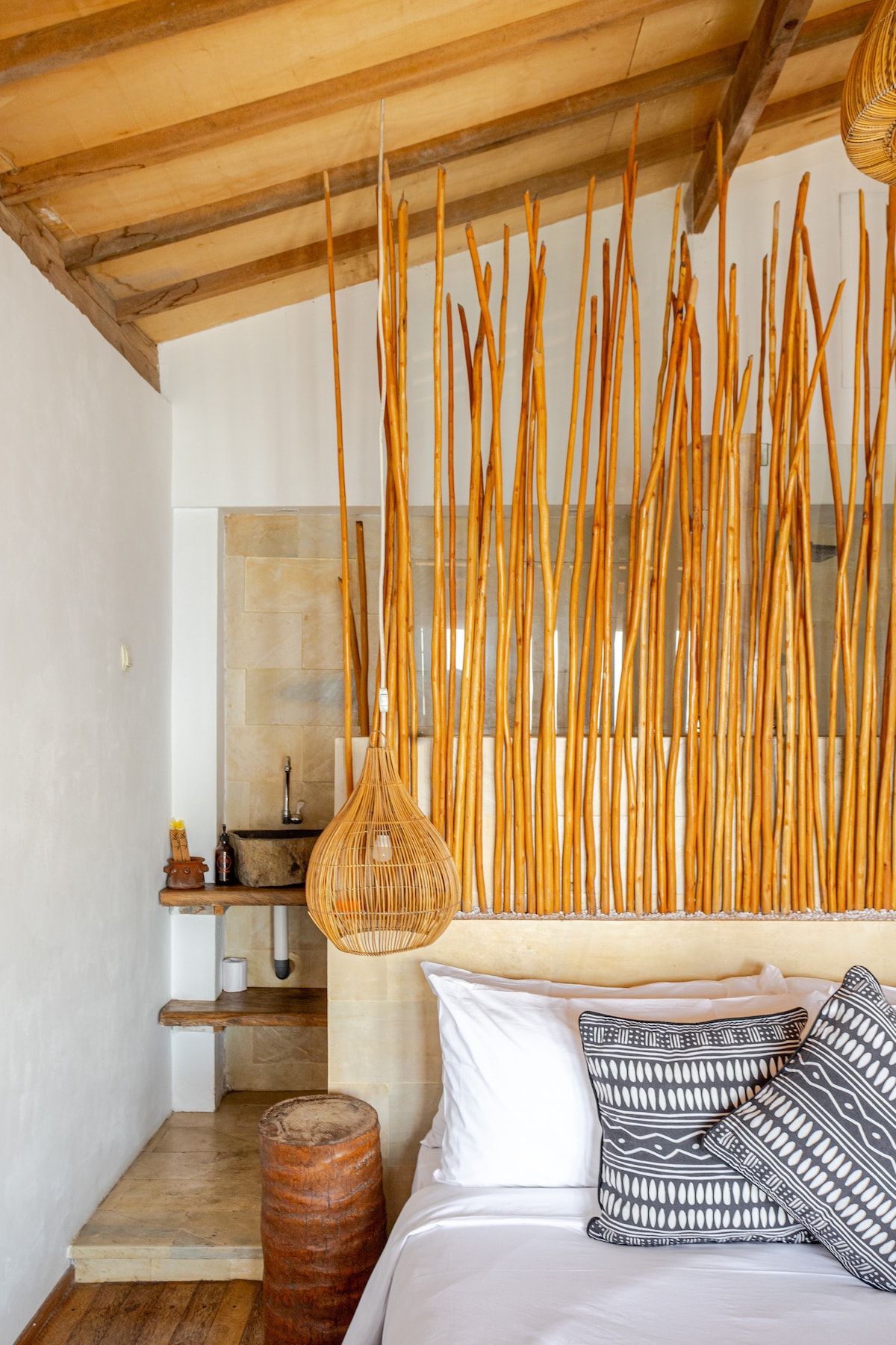 Villa Rama @ Bersantai Villas je klidné útočiště s jednou ložnicí na svahu kopce Nusa Lembongan, jen 2 minuty chůze od pláže Coconut Beach. Dokonale umístěný v blízkosti nejlepších surfařských vln, pláží, kaváren a lázeňských středisek Spring Day Spa, nabízí snadný přístup ke všemu, co potřebuješ, a zároveň zůstává klidný a relaxační. Ideální pro páry nebo malé rodiny. Sdílí bazén s vilem Sinta. Denní úklid naším přátelským balijským personálem je v ceně.
