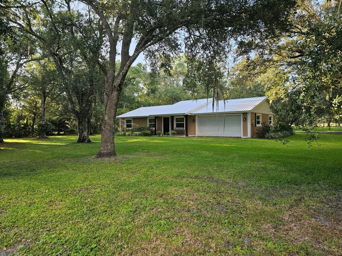 Přijeďte si užít starou Floridu v tomto zcela zrekonstruovaném domě ve stylu chalupy na téměř sedmi akrech. Odpočiňte si a relaxujte v tomto soukromém domě o rozloze 1000 čtverečních stop s manželskou postelí a rozkládací pohovkou pro až čtyři osoby. Otevřený obývací pokoj, jídelna a plně vybavená kuchyně. K dispozici je prádelna. Vybaveno WiFi a Direct TV. Při užívání si soukromého dvorku je běžné vidět hojnou zvěř a divoké květiny. Divoké orchideje v mnoha dubových stromech kvetou na začátku léta.