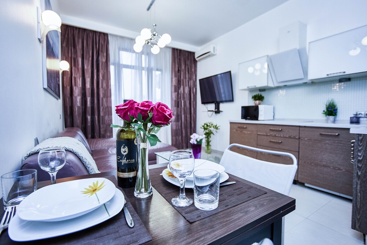 Studio v centru. Balkon v městské zahradě. Vířivka. .CityGarden Apt