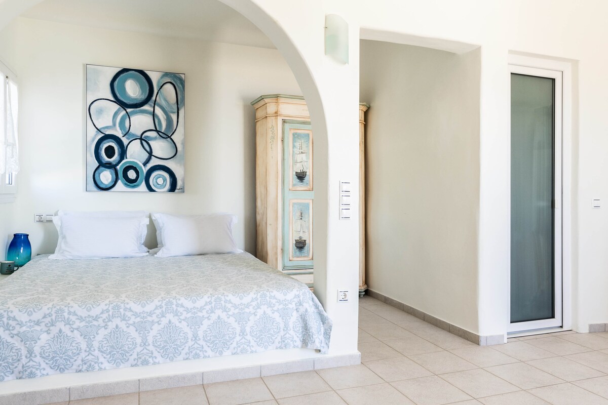 Klidný pokoj pro dva v kykladském stylu: výhledy – snídaně