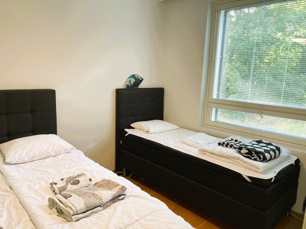 Vítej v našem okouzlujícím bytě v srdci Turku! Ideální pro klidný odpočinek nebo produktivní služební cestu. Lůžka lze spojit do 230 cm široké postele velikosti king. Kromě toho rozkládací pohovka v obývacím pokoji. To nejzajímavější: • Odpočiň si na naší útulné pohovce, užij si TV s plochou obrazovkou a rychlé Wi-Fi. • Soukromá sauna • Plně vybavená kuchyň • Nachází se v klidné vilové čtvrti, přesto v blízkosti centra města a univerzity • Parkování: Bezplatné kryté parkování • Prostorný balkon