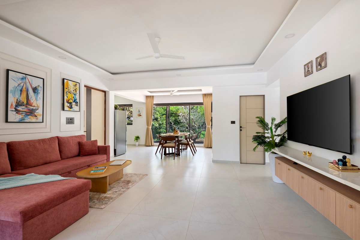 📦 Brown Tape – Serene 2BHK poblíž Rio Resort, Arpora Tento útulný apartmán se dvěma ložnicemi a kuchyní, který se nachází v klidné části Arpory, v sobě snoubí teplo Goanu s moderním komfortem. ☀️ Světlý obývací pokoj se otevírá na svěží balkon, zatímco vzdušné ložnice a plně vybavená kuchyň tě ubytují jako doma. 🍳 Vychutnej si osvěžující bazén 🏊, bezpečné parkování 🚗 a uzamčený bezpečnostní systém. 🌿 V blízkosti kaváren, tržnic a pláží – ideální pro práci, odpočinek nebo krátký pobyt v Goa. 🌴