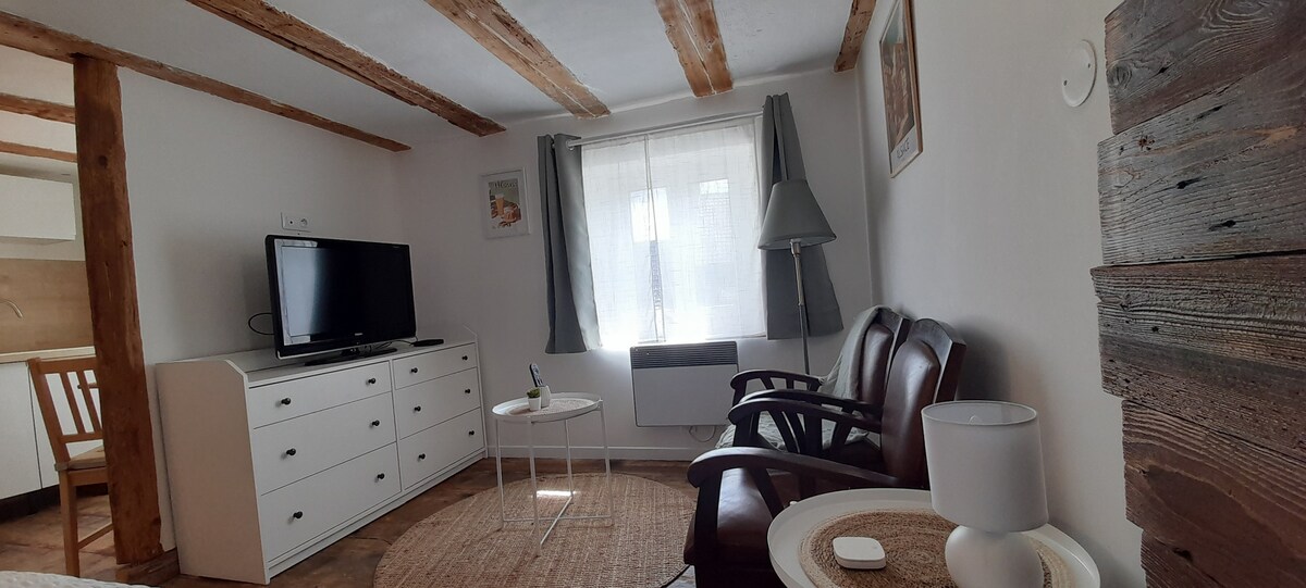 40m2 studio. V blízkosti Colmaru a vinařské stezky v Alsasku. Ubytování zahrnuje vše potřebné, abyste se cítili jako doma: - Obývací pokoj s TV, WiFi - Manželská postel s ložním prádlem - Koupelna s ručníky - Kuchyně vybavená mikrovlnnou troubou, varnou deskou, lednicí, kávovarem, rychlovarnou konvicí, čajem, kávou, solí a pepřem. - Soukromá terasa Příjezd do ubytování je autonomní, vstup je oddělen od našeho hlavního vchodu, díky kódové skříňce.