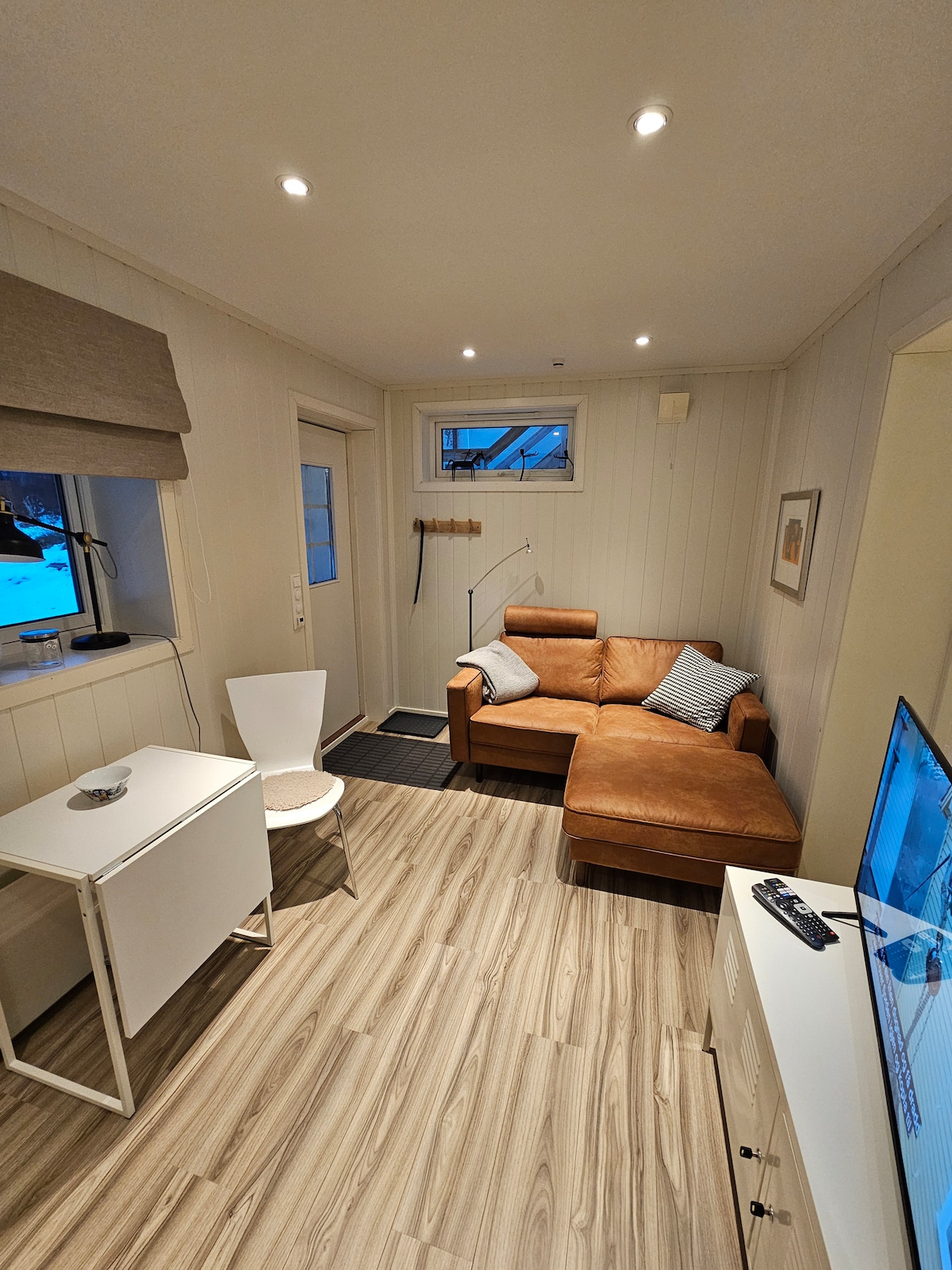 Koselig rorbu ved sjøkanten i Kjærsundet, 5 minutter fra Lauvsnes sentrum hvor man kan tanke opp båten fra brygga og det er dagligvarebutikk like ved. Serveringsstedet Zanzibar Inn ligger også ved bryggekanten. På Lauvsnes finnes også hurtiglader for el-bil. Leiligheten er lys og moderne og fullt utstyrt med oppvaskmaskin, kaffetrakter, vannkoker, mikrobølgeovn, fryser, hårføner etc. Det er 2 soverom med 2 senger i hvert rom. Moderne bad med dusj og WC. Båt kan også leies etter avtale.