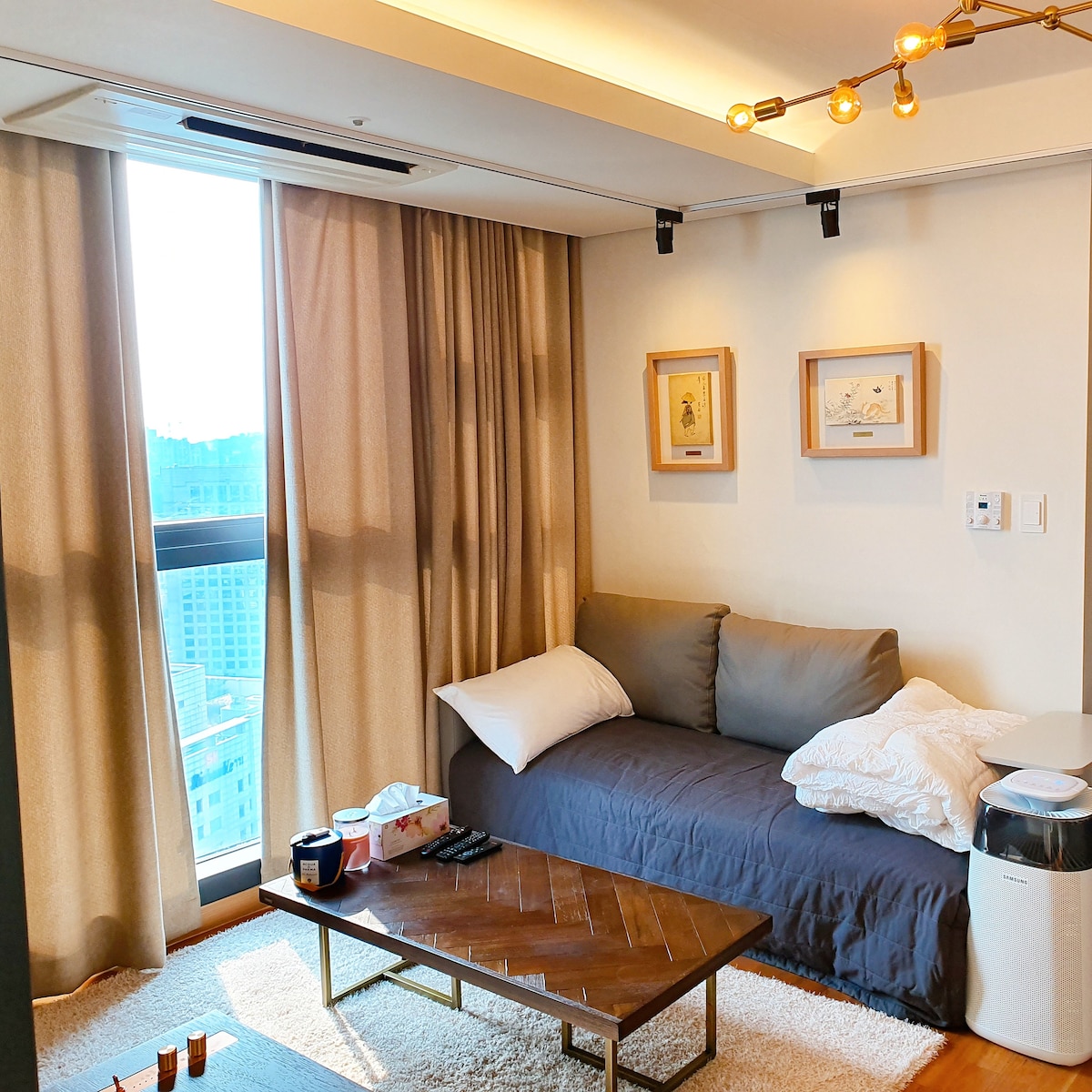 A cozy couch in downtown Seoul. ソウル市内の居心地のよいソファベッド
