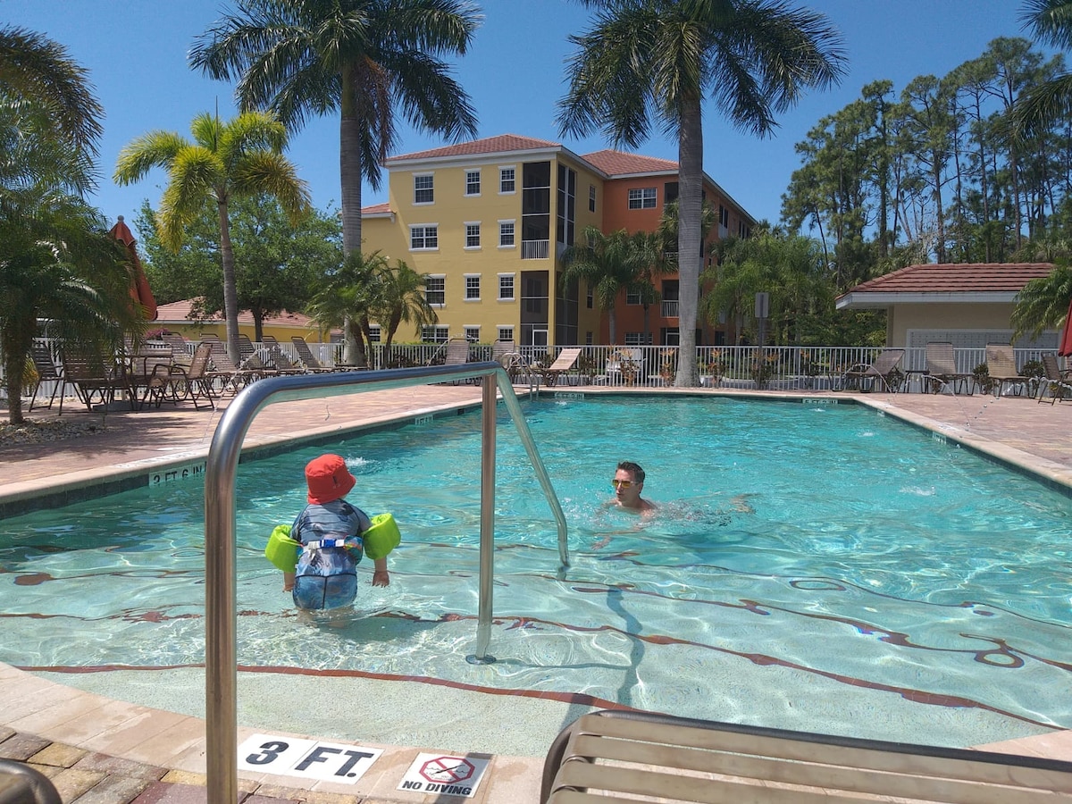 Palms, který se nachází v klidné přírodní rezervaci, byl kompletně přestavěn. Vyhřívaný bazén (vždy nastavený na 89 stupňů s vodopádem) je také vzdálen pouhých 30 kroků. Je to taky nejlepší místo v celé Lely! Odpočiň si a odpočiň si v tomto klidném, krásně přepracovaném prostoru. Odpočiň si na verandě s výhledem na přírodní rezervaci a užij si klid tohoto krásného tropického ráje. Klidný zážitek v resortním stylu a 2 minuty chůze k přírodním stezkám Lely, Starbucks atd.