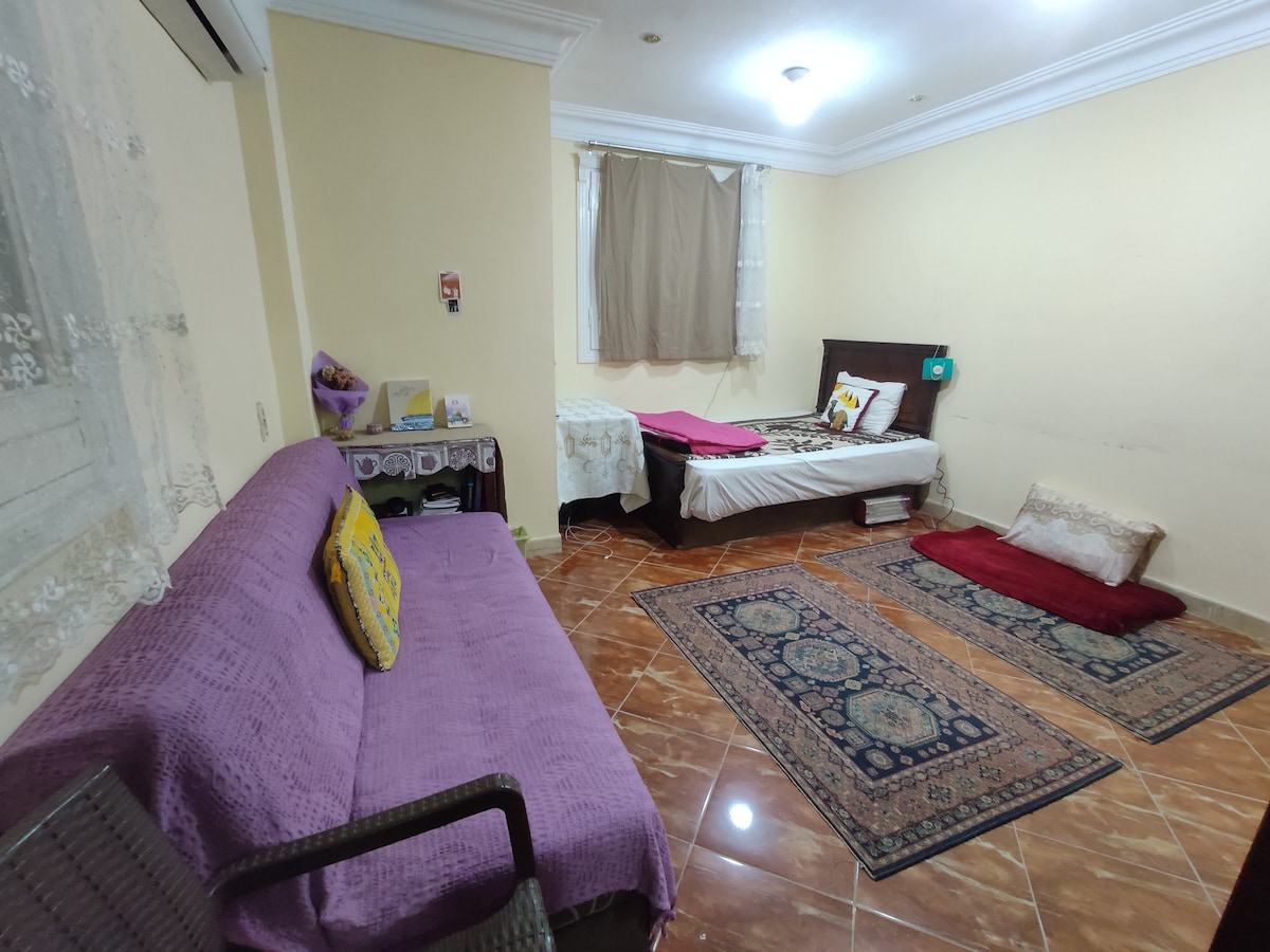Enjoy a comfortable stay in this 2-bedroom apartment with a living room, fully equipped kitchen, 1 bathroom, and fast Wi-Fi. Suitable for both short and long stays. Nearby locations: • 20 minutes from the airport • 15 minutes to Almaza City Center • 15 minutes to City Stars Mall A practical and cozy home.