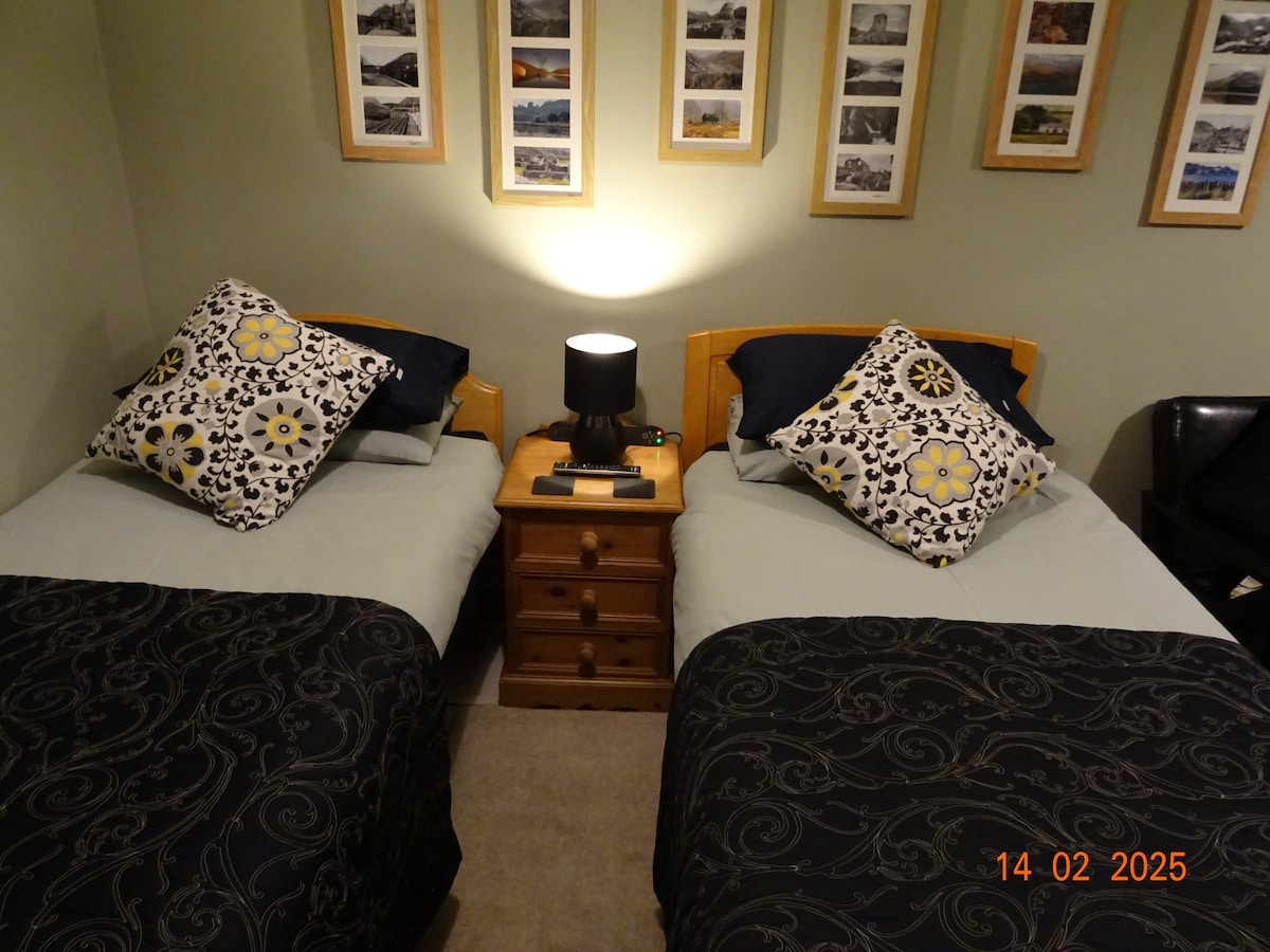 10 minut chůze od trasy Llanberis až po Snowdon! Klidná samostatná jednotka pro dvě osoby s bezplatnou wifi a televizí. Šatna na kabáty a boty, která vede do umývárny. Vlastní sprcha a WC. Uzamčené spojovací dveře pro soukromí. Nezávislý přístup přes boční dveře, bezplatné parkování pro jedno auto a v případě potřeby pro dvě po domluvě pro naše hosty. K dispozici je mikrovlnná trouba, rychlovarná konvice, čaj, káva, mléko a lednice. ŽÁDNÉ POPLATKY ZA ÚKLID, ŽÁDNÝ MINIMÁLNÍ POBYT A PARKOVÁNÍ ZDARMA. Nachází se v centru Llanberis -