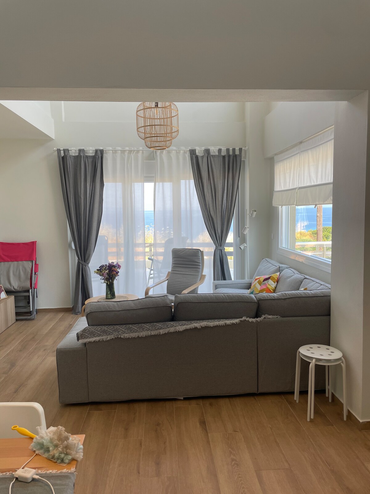 This charming seaside vacation home near Nea Fokea, Halkidiki, offers a peaceful blend of nature and coastal beauty. Surrounded by pine forests and sandy beaches, it features self-catering accommodation with stunning views of the Aegean Sea and Halkidiki's second peninsula. The property includes a spacious garden with a small basketball court, perfect for relaxation. The second-floor apartment provides a serene escape, ideal for those seeking a quiet summer retreat away from the crowds.
