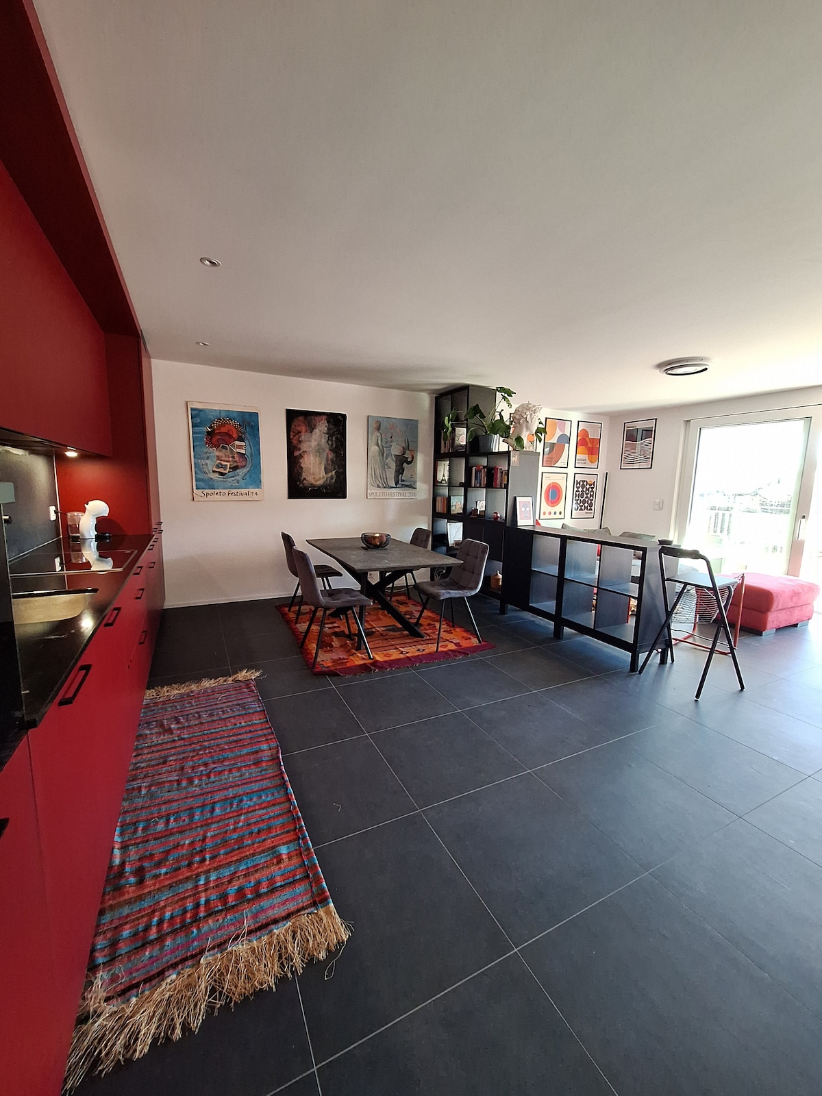 Bright and quiet open-space apartment in Neuchâtel for up to two guests. The 50 m² living area is filled with natural light and thoughtfully furnished, with a comfortable sleeping area and a large wardrobe. The elegant, fully equipped kitchen includes all essentials, a dining table for six and a washing machine. Enjoy a very spacious private 20 m² balcony, perfect for relaxing. Indoor garage parking may be available on request.