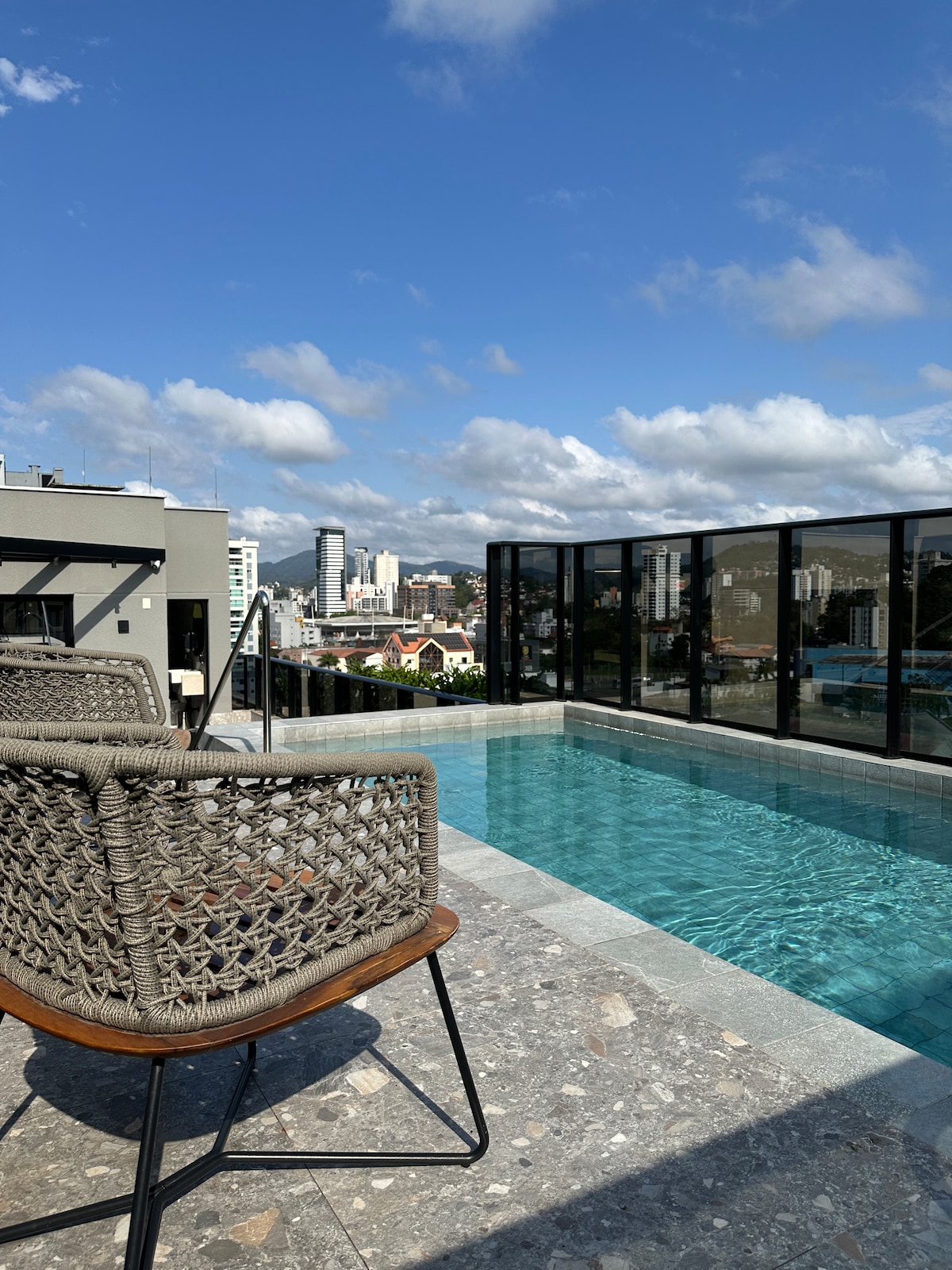 Beautiful studio apartment with garage, in the center of Blumenau, near everything! Building has a gym and an incredible rooftop pool. The apartment is complete and very stylish. Double bed, sheets, covers, pillows, bath towels, AC. Full kitchen with refrigerator, microwave and tableware for 2. Laundry with iron table and iron.