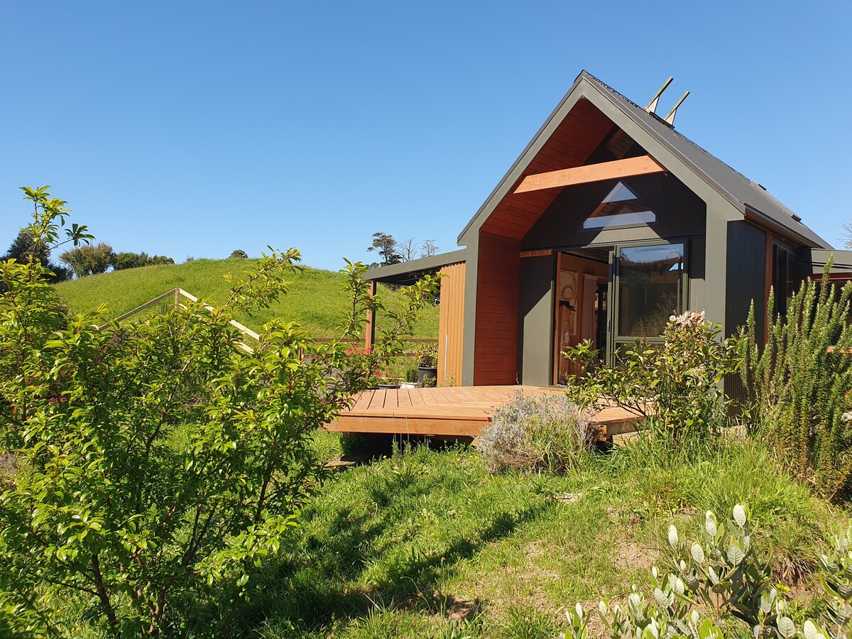 An off grid digital detox. Light the brazier, toast some marshmallows, run an outdoor bath under the stars & pour a glass of wine or a hot drink. Read a book, play a game of cards, chess or a word find it’s time to rest & recharge! Wake up in a comfy king bed & make a fresh brew of people’s coffee in the areopress. The cabin is located on our urban rural section tucked down in a peaceful valley next to our pole shed. Come & enjoy a weekend away to just be still & slow down for a wee bit. 🖤