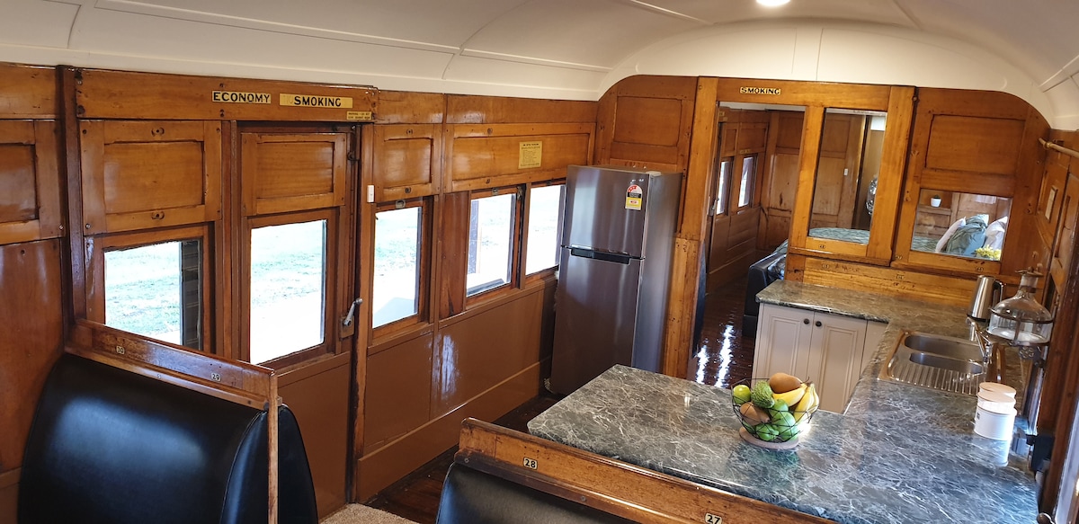 Vrať se v čase (100 let) a ubytuj se v jedinečném luxusním vlakovém vagónu se 2 ložnicemi. Queen Mary inspiruje půvabem dávných dob, s podmanivým půvabem, který je těžké popsat. 15 minut chůze od vesnice Pokolbin, The Queen Mary nabízí původní ložnice a chodby, stejně jako krásný jídelní kout ve stylu klubového salónu s kuchyňkou, která se otevírá na soukromou verandu s venkovními salony. Tento vlak se nachází na našem pozemku – The Station Hunter Valley.
