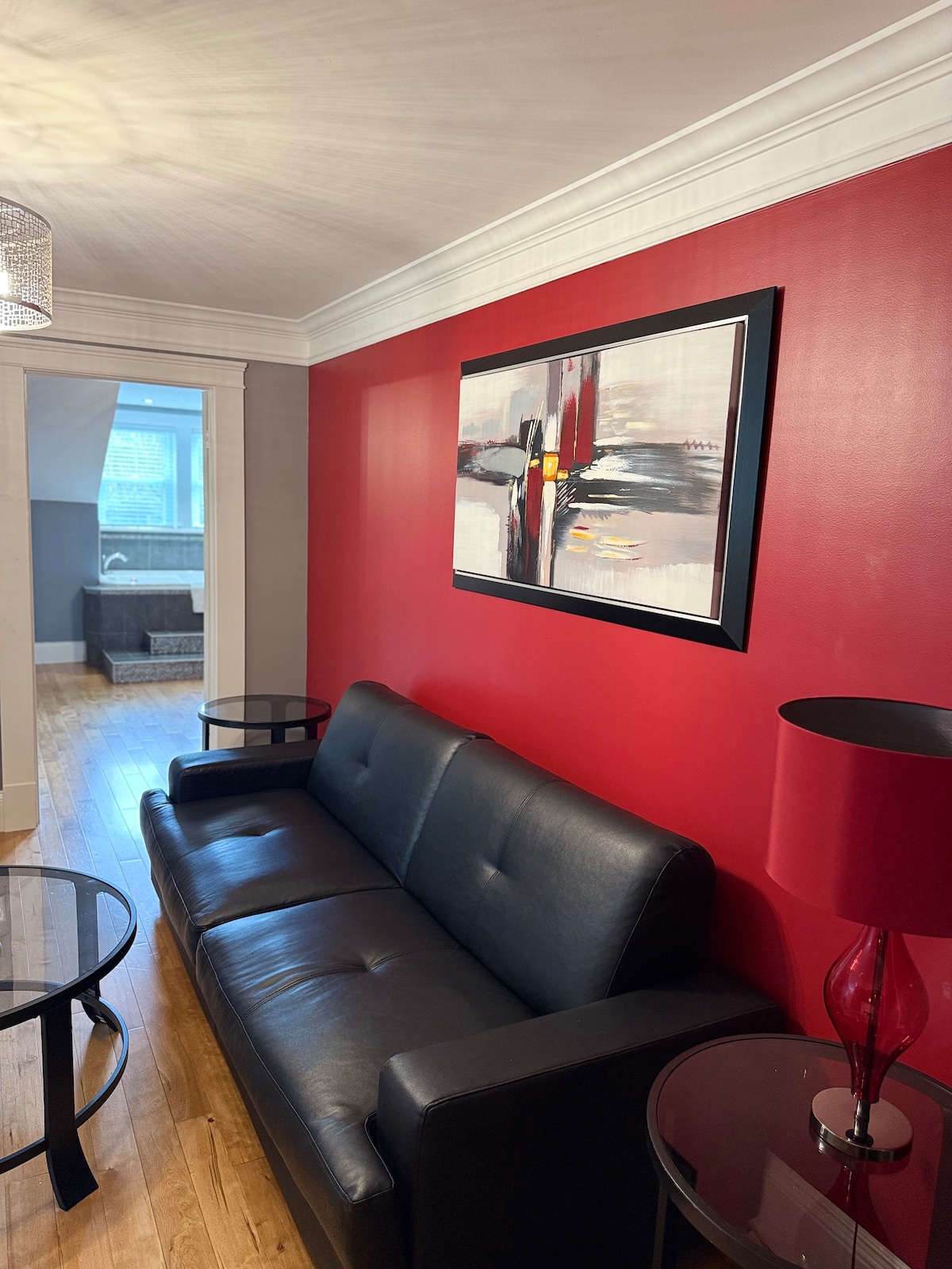 Spectacular 1 Bedroom Penthouse Suite located in the heart of downtown St. John’s with panoramic views of the St. John’s harbour. You’ll enjoy a Hot Tub, Sunroom, sauna, king bed, fine linens, towels, a 50 inchTV, and a well equipped Kitchenette with an assortment of glasses including plastic for a safer hot-tub experience. Off-street Parking included for one vehicle only. Within walking distance from parks, pubs, restaurants, museums, George street, and other historic landmarks