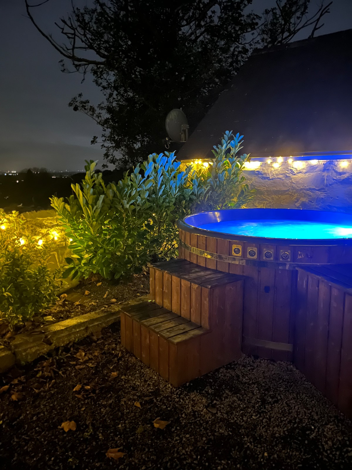 Vířivka v domku Lichen Cottage s výhledem na hory