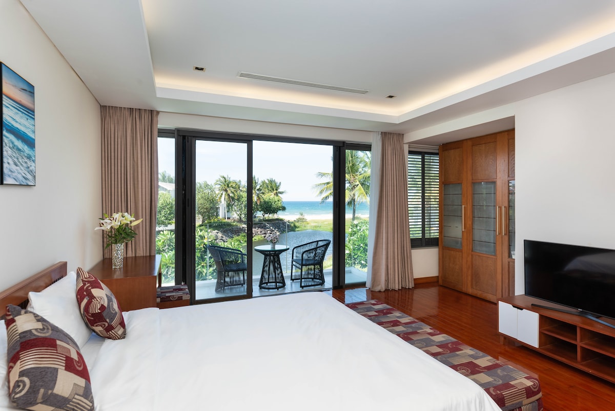 Welcome to your private 1000m² riverside villa, nestled inside The Ocean Villas – a 5-star beachfront resort in Da Nang. Surrounded by lush gardens and tranquil water views, this 4-bedroom, 5-bed villa features a private pool, ensuite bathrooms, and modern interiors. Enjoy full access to the resort’s beach, gym, spa, tennis court, and kids’ facilities. Perfect for families or groups seeking a peaceful, connected escape. ✨ “Add to your wishlist and let Da Nang unfold from your serene retreat.”