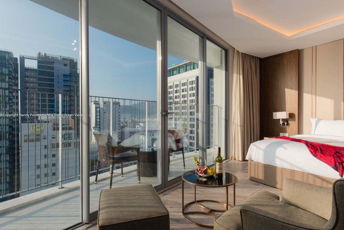 Úžasná ložnice s výhledem na oceán v Muong Thanh Oceanus