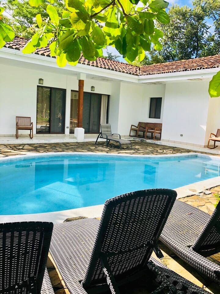 Tento dům se 3 ložnicemi je jen 2 minuty chůze od slavného surfařského místa Playa Colorado. Je to perfektní domov pro rodiny nebo surfaře, je prostorný, plně oplocený, soukromý a nachází se v pěkném klidném prostředí s bazénem. Dům má generátor, takže během výpadku proudu nepřijdete o elektřinu. Rychlost internetu je 15 Mbps, což je zde velmi rychlé. Prvotřídní vlny jsou jen pár kroků daleko, poté se můžete zotavit a odpočinout v tomto klidném pohodlném domě s bazénem a zahradní terasou.
