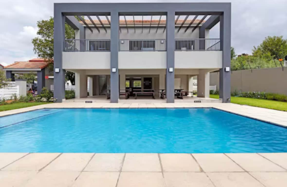 Solar powered battery inverter to escape load-shedding and forget your worries in this spacious, peaceful and centrally located place. A stone's throw from the best restaurants, shopping centres, sports facilities, and hospitals. Let the children play in the jungle gym and lush garden. Relax in the sauna and take a dip in a pool to cool down. Exercise at the gym and play pool. We look forward to welcoming you to our perfectly hidden getaway in the middle of bustling city landscapes.