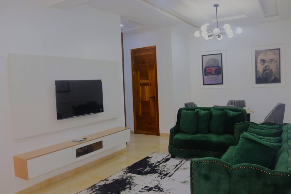 You're welcome to our apartment, located in a gated estate with restricted access to the general public. We offer 24rs electricity and air conditioning of your apartment. It is a tasty, Homely & Family-themed 2-Bedroom Apartment with a Balcony. It's the perfect place for a family vacation & weekend getaway, bridal showers, marriage proposal etc. We have the following: 24hrs Electricity 24hrs Air Conditioning 24hrs hot water Clean Water Starlink Wi-Fi Errand services