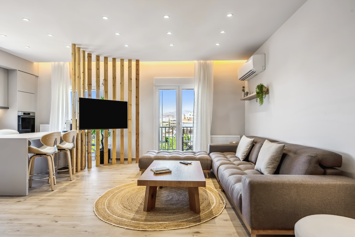 Obdivuj moderní architekturu, design a pohodlí tohoto apartmá v 6. patře. Odpočiň si na své soukromé terase s nádherným panoramatickým výhledem na Akropolis a panělskou čtvrť v Aténách. Zírejte na hvězdy skrz střešní okno nad postelí. Vydejte se do rušné čtvrti Gazi, která je známá svým nočním životem. Užijte si procházku pár minut od archeologických nalezišť a atrakcí města, které musíte vidět. Jeden blok od stanice metra – linka na letiště.