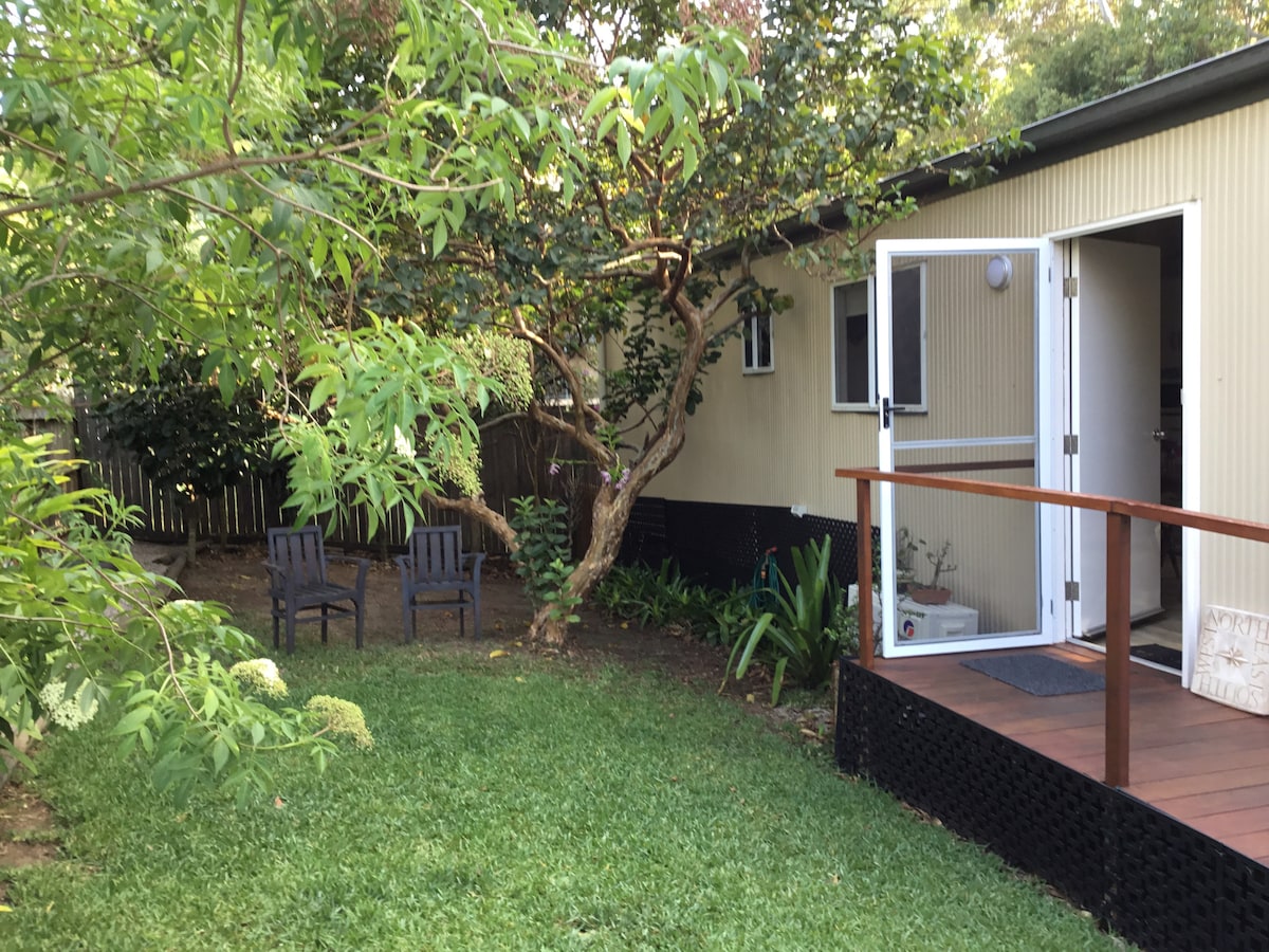 Bonsai Cottage is completely private with its own fully fenced small garden nestled within our beautiful property a 3 minute drive to Eumundi Markets and 15 minutes to Noosa and Peregian beaches. We provide a small selection of breakfast commodities in fridge/ larder. Pet Friendly, Bonsai Cottage is also perfect for elderly or partially disabled. Bedroom with king size bed, bathroom, media room, living and dining room with fully equipped kitchen. Late check out often available on request.