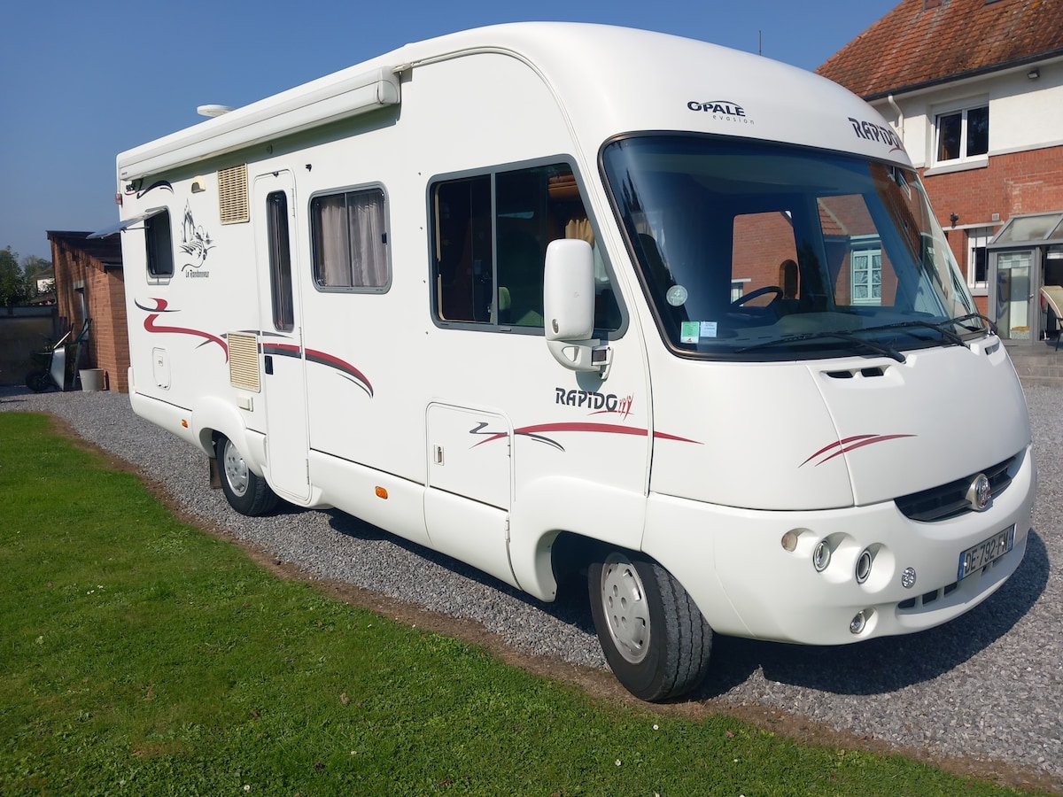 Bienvenue dans l'Avesnois ! C'est avec plaisir que nous souhaiterions vous faire partager notre passion à bord de notre camping Car "Le Randonneur". Ce véhicule de loisirs spacieux saura vous séduire grâce à son confort, son bel espace convivial , sans compter ses nombreux équipements ! N'attendez pas : réservez dès à présent votre prochain week-end ou vos vacances en famille. Au plaisir de vous rencontrer au sein d'une jolie propriété, Valérie et Ludovic
